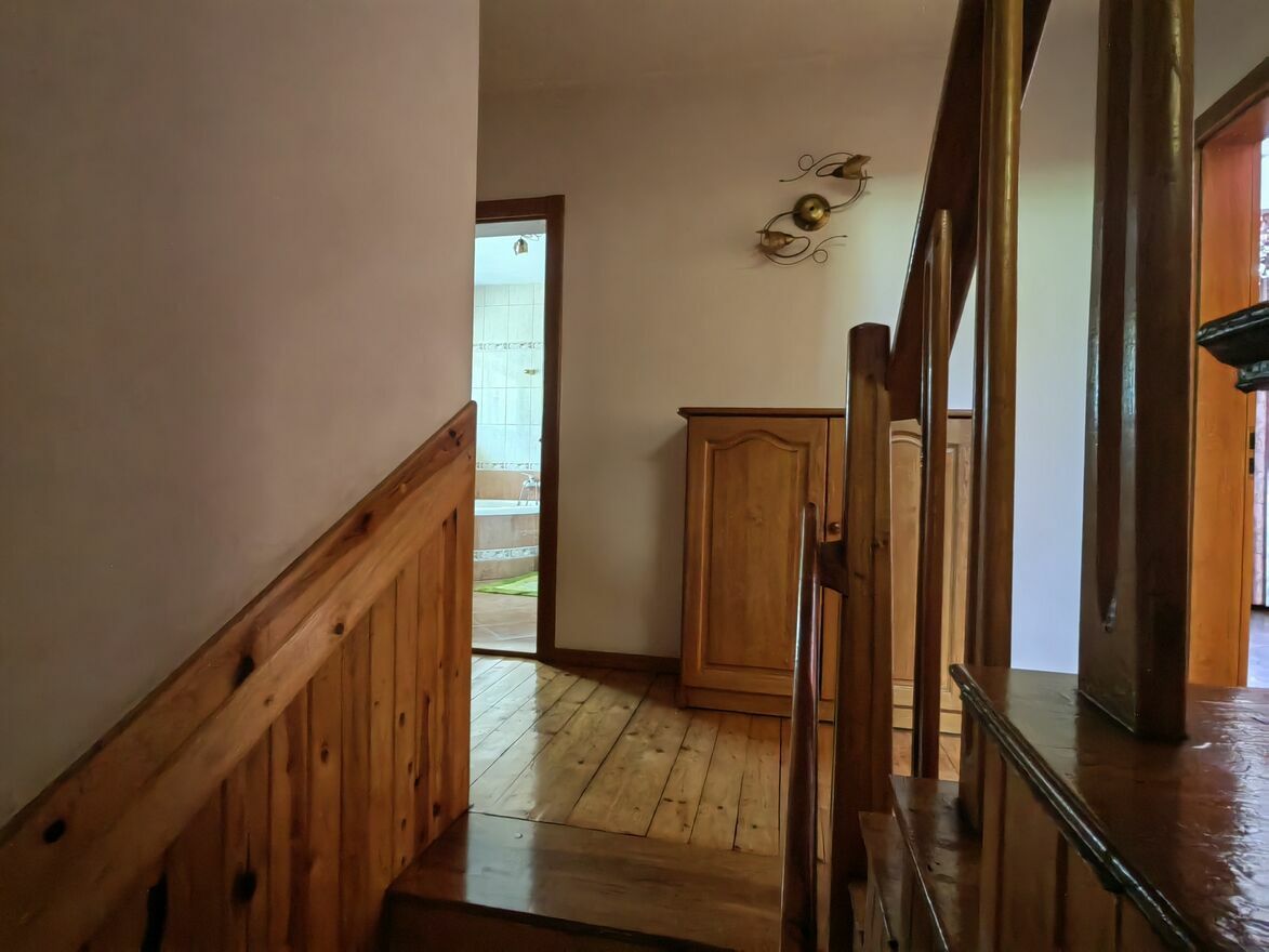 Okna PCV, drzwi drewniane, schody dębowe.