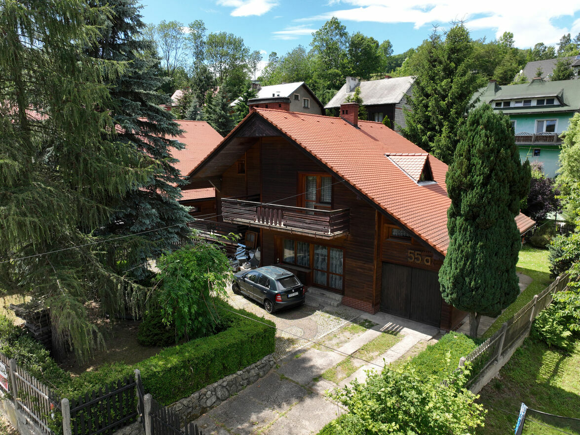\"Dom w Rościszowie\" to urokliwa wiejska posiadłość położona w malowniczej okolicy Dolnego Śląska. Znajduje się w niewielkiej miejscowości Rościszów, otoczonej lasami i wzgórzami, co czyni ją idealnym miejscem do zamieszkania (zobacz film z drona w załączniku). Dom zachwyca swoim tradycyjnym, rustykalnym stylem, który łączy w sobie elementy regionalnej architektury z nowoczesnymi udogodnieniami. Wnętrza są przytulne i starannie urządzone. Na parterze znajduje się przestronny salon i kuchnia z jadalnią w pełni wyposażona. Na piętrze znajdują się dwie sypialnie z wyjściem na balkon i widokiem na okoliczne krajobrazy. Każdy pokój ma unikalny charakter, z okien można podziwiać panoramę gór i lasów, co dodaje uroku temu miejscu. Ogród otaczający dom jest prawdziwą oazą spokoju znajduje się taras i altana z miejscem na grilla. Dla miłośników aktywnego wypoczynku w pobliżu są szlaki turystyczne i rowerowe. W okolicy około 900 m znajduje się znane Gospodarstwo Agroturystyczne Cicha Woda. Do miasta powiatowego Dzierżoniów odległość 6 km. do Wrocławia 68 km. \"Dom w Rościszowie\" to miejsce, gdzie można poczuć prawdziwą bliskość natury niezależnie od pory roku w pięknych okolicznościach przyrody.